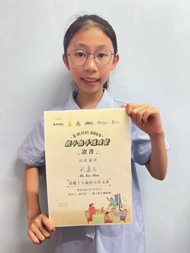 我們鼓勵子女真誠表達,或以創意方式描述他們的體驗,例如用故事、詩歌或比喻來表達。最具創意或最能表達深刻感受的10位參加者將獲得精美禮品,獎勵他們的用心與創意。