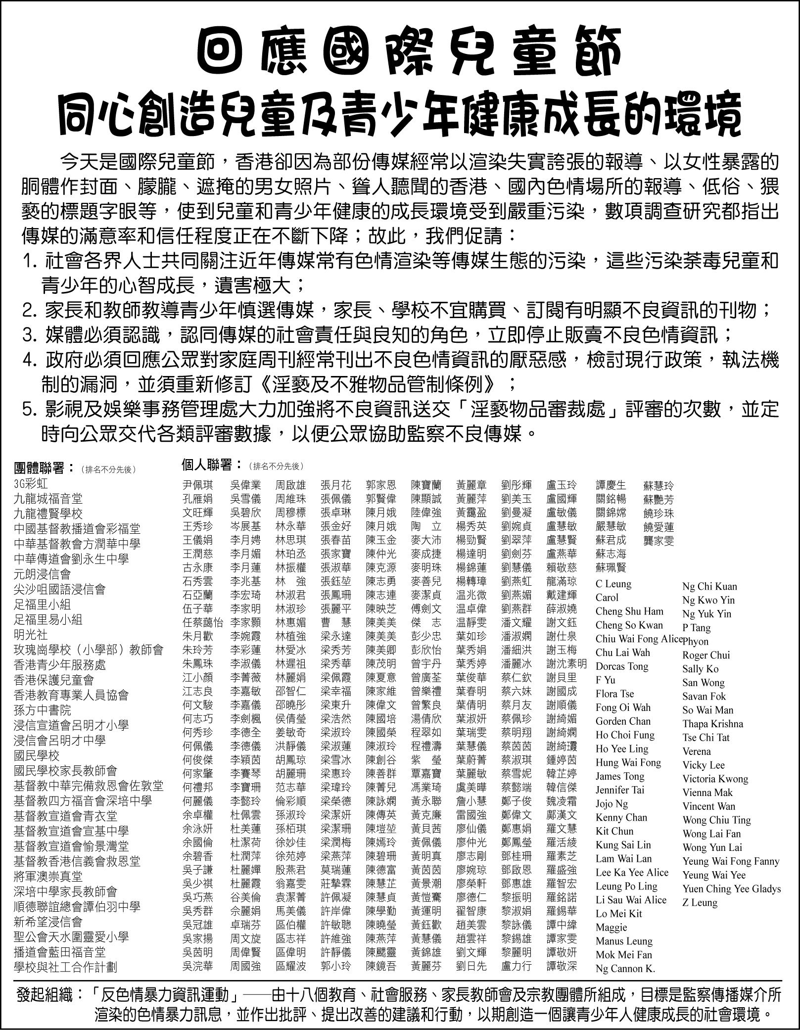 倡議、登報及行動
