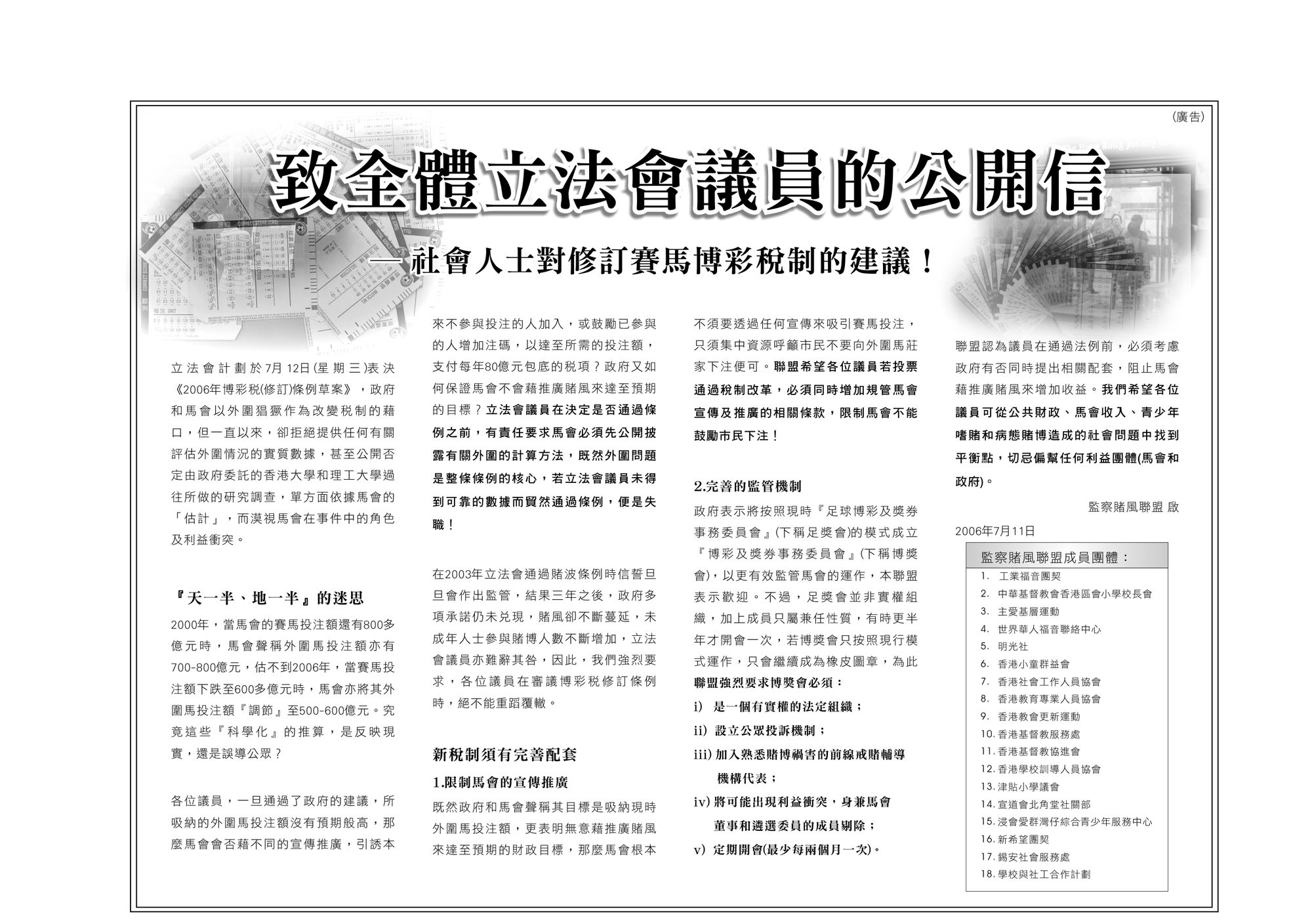 致全體立法會議員的公開信