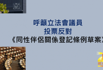 呼籲立法會議員投票反對《同性伴侶關係登記條例草案》