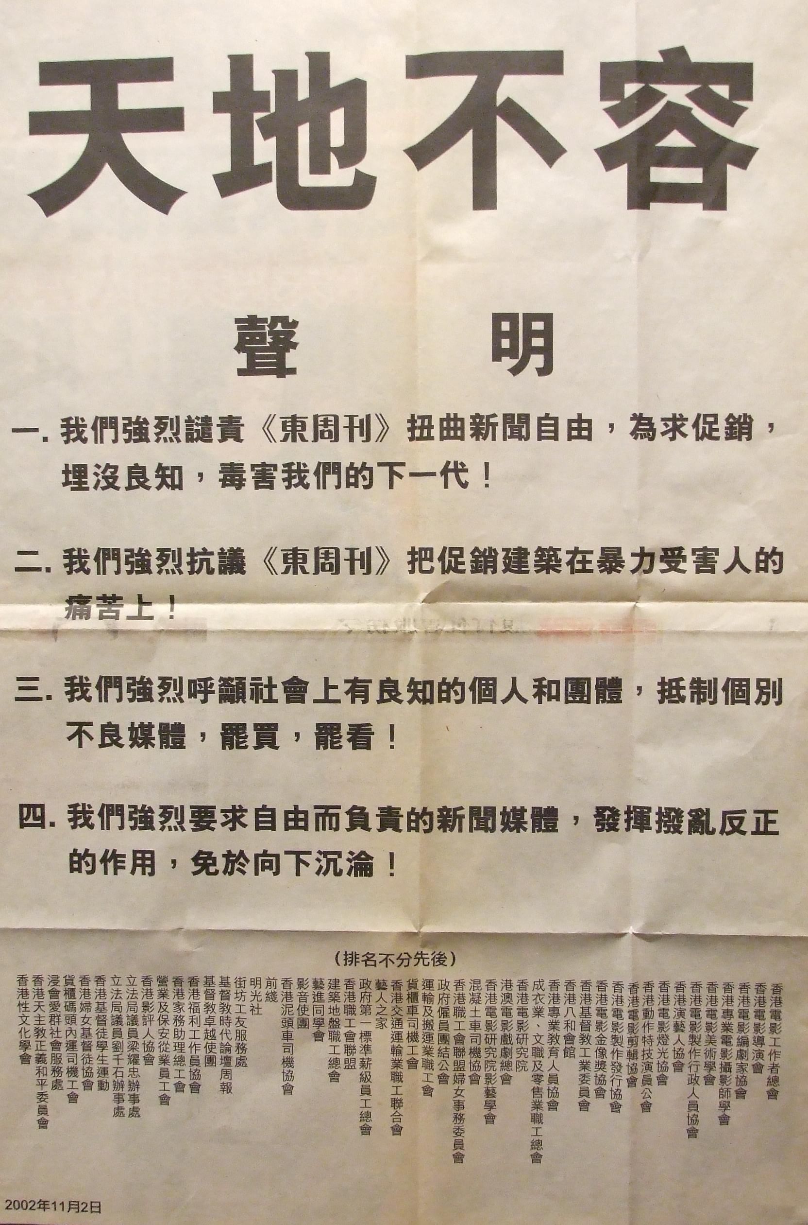 強烈讉責《東周刊》扭曲新聞自由