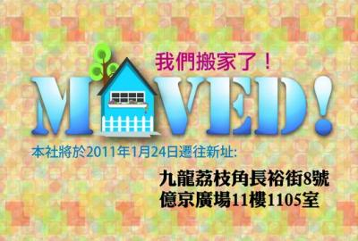 13/01/2011本社已於2011年1月24日遷往新辦公室,新辦公室地址是九龍荔枝角長裕街8號億京廣場11樓1105室。 因搬遷關係,生命及倫理教育資源中心將於2011年1月19日開始暫停開放一個月,2月21日重新開放。 地圖