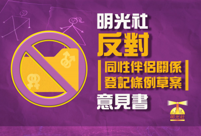 明光社就《同性伴侶關係登記條例草案》不獲通過表示歡迎